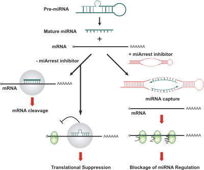圖2. miRNA抑制劑表達(dá)克隆的作用機(jī)理
